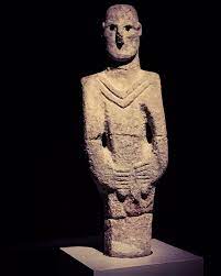Pillars show signs toward concrete deities (see the crescent, disc, bucranium signs present on the belt but also in general on the surface of the pillars), but they are definitely not yet. The worship and veneration of the stone(s) have extremely ancient origins being the first things revered and deified by man. The stone pillars themselves can in no way represent deities, but can only be the seat of divine powers or incipient deities. The worship of the stone leads so far to stone altars and temples or to the notion of the sacred stone Bet-El / Betuli or the stone from Kaba. Baetylus – Wikipediahttps://en.wikipedia.org › wiki › Baetylus Baetylus (also Baetyl, Bethel, or Betyl, from Semitic bet el “house of god”) are sacred stones that were supposedly endowed with life, or gave access to a deity. Full developed antropomorpphic deities, apeeared a little later, Urfa-man From https://www.facebook.com/bronzeagecollapse/posts/the-urfa-manworlds-oldest-statue-of-a-humana-neolithic-narrativeurfa-man-carved-/859111487609255/