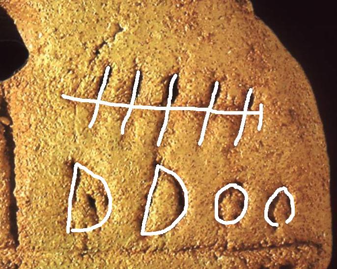 Sign No. 15 (fig.4) is a numeral (originally sixty; however, after having been borrowed. it could acquire the meaning of the respective key numeral in the decimal system, one hundred).